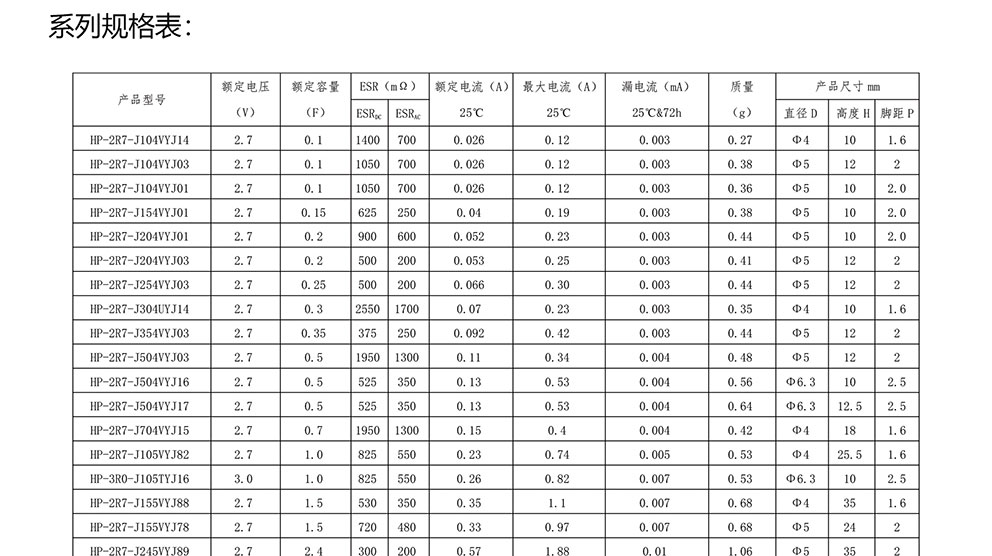 超級(jí)電容器 HP系列 微小引針型